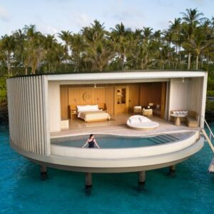 Set across three inter connected islands within the archipelago, defined by minimalistic architecture, overwater beachfront villas, each with a private pool, sundeck, expansive outdoor living and uninterrupted ocean views.